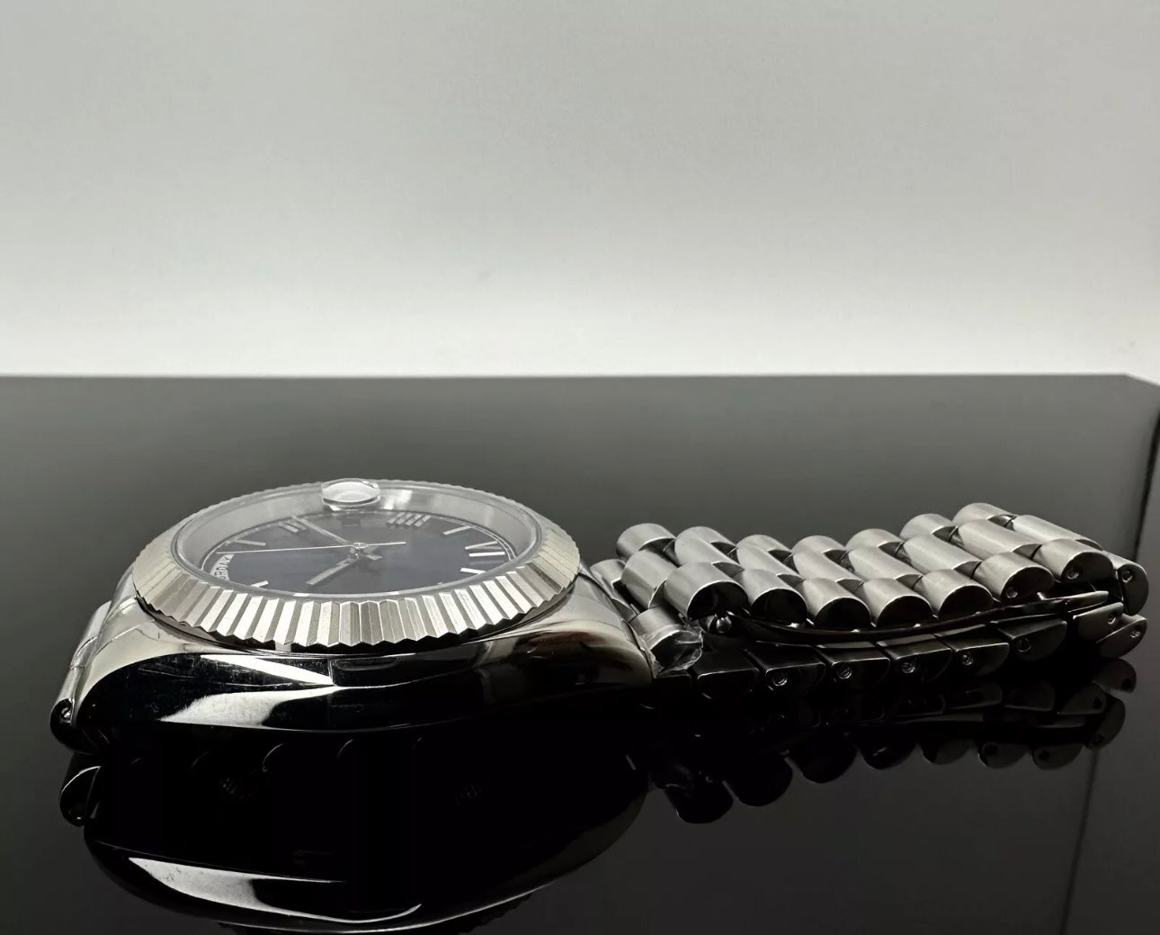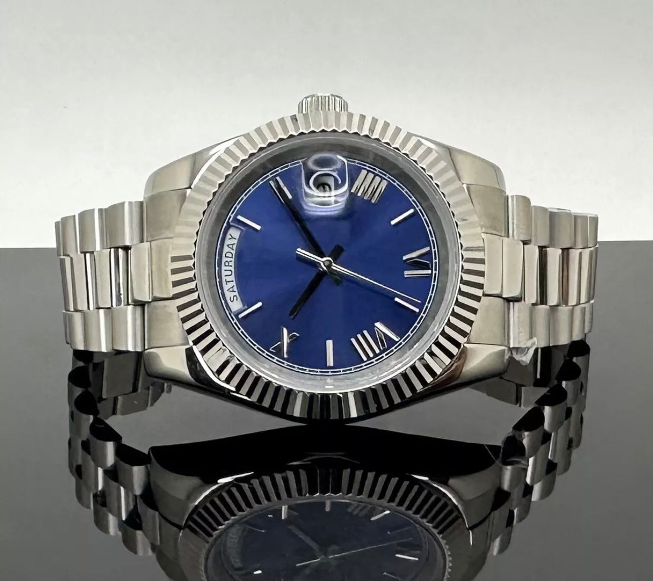 - Silver President Blue Dial Watch by Grail Mods
