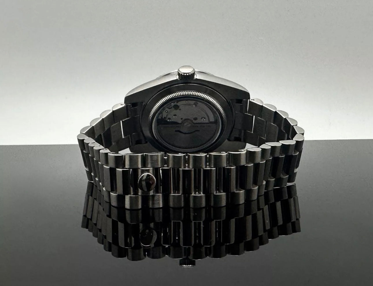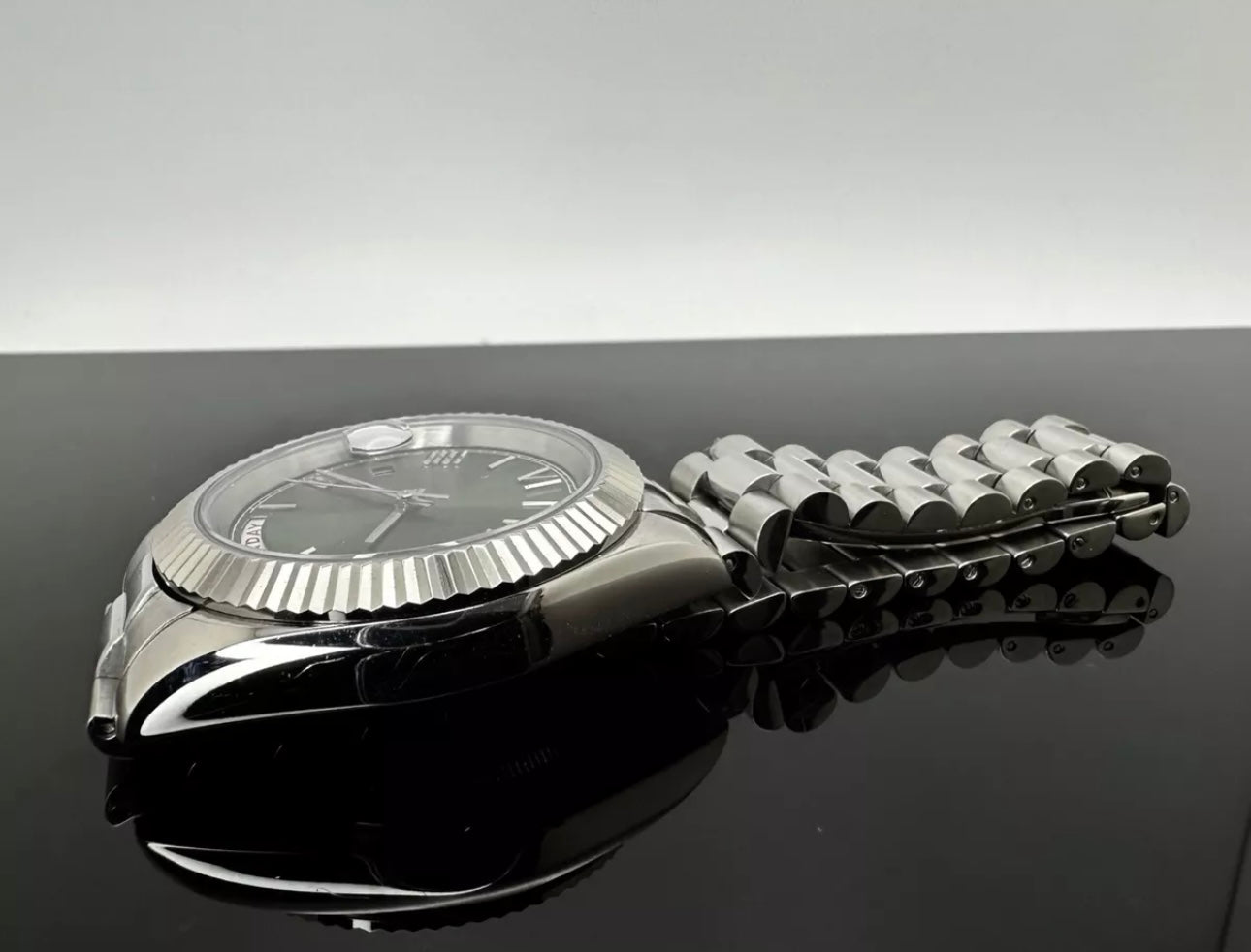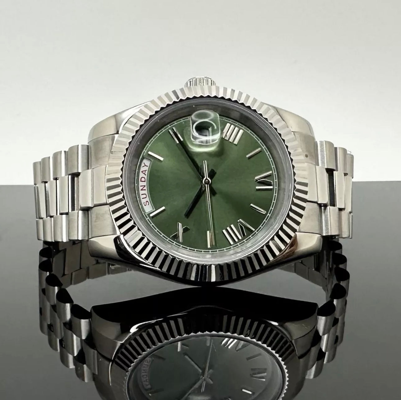 - Silver President Green Dial Watch by Grail Mods