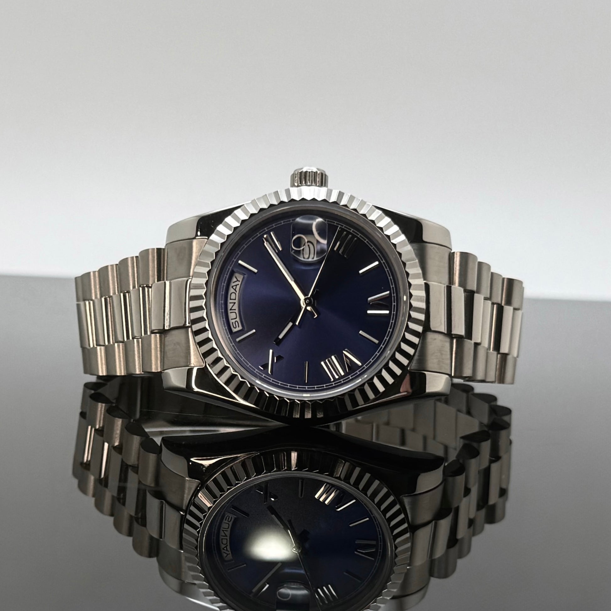 - Silver President Dark Blue Dial Watch by Grail Mods