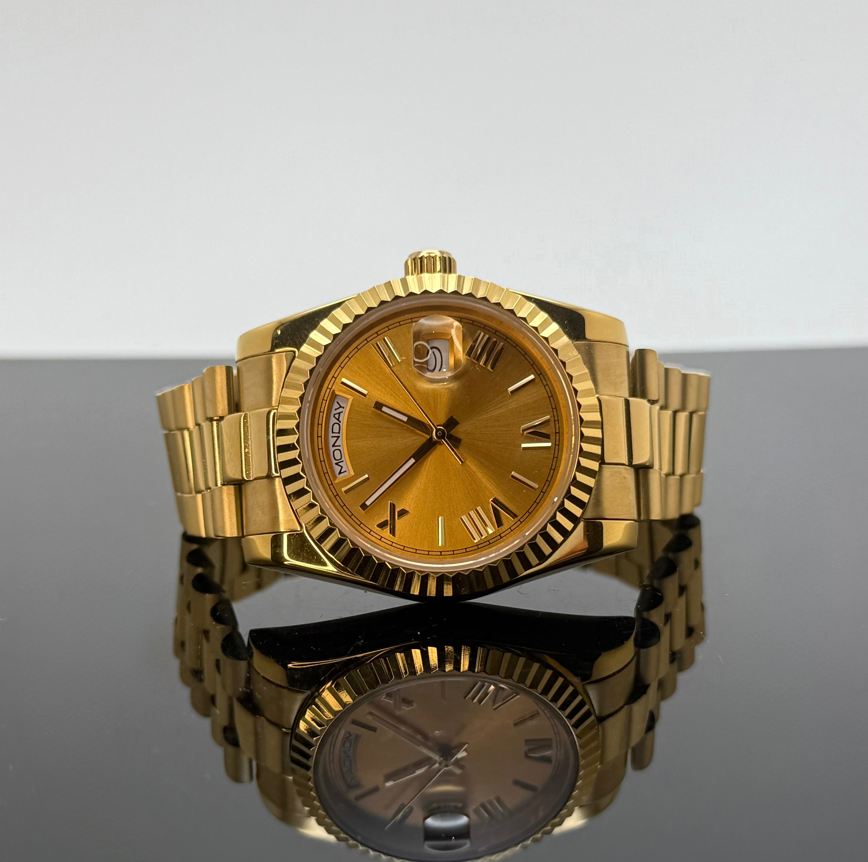 - Gold President Champagne Dial Watch by Grail Mods